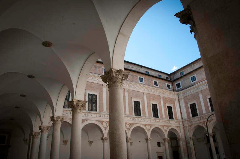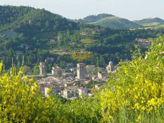 Boven: uitzicht vanaf ons huis en San Leo; onder het Palazzo Ducale van Urbino en Sant'Angelo in Vado.